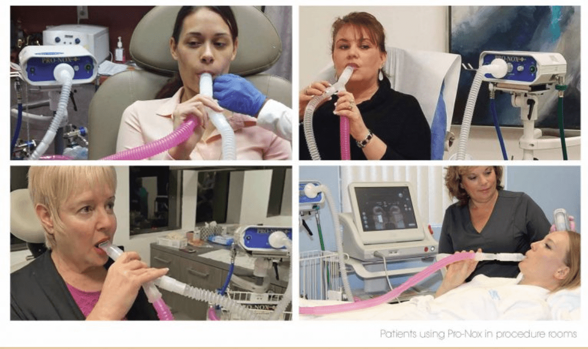 Pro-Nox, commonly known as “laughing gas,” is a safe and effective mixture of 50% nitrous oxide and 50% oxygen designed to minimize anxiety and discomfort during aesthetic procedures. This innovative system provides patient-controlled pain relief and euphoria with minimal to zero side effects. Unlike traditional oral medications that can have lingering effects and require transportation, Pro-Nox resolves within 8-10 minutes, allowing you to drive yourself immediately after treatment.